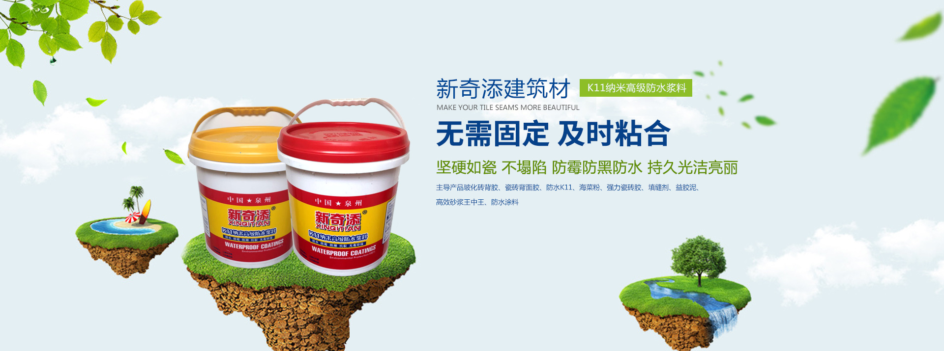 泉州市新奇添建筑材料有限公司成立于2010年,注冊(cè)資金500萬(wàn)元,是一家專業(yè)從事高端防水材料、新型墻體材料、建筑材料設(shè)備的研發(fā)、生產(chǎn)和銷售的新興高科技企業(yè)。公司人員組成,以高、中級(jí)專業(yè)人才為主體。其高科技含量達(dá)國(guó)內(nèi)外同行業(yè)先進(jìn)水平,在所涉領(lǐng)域具備強(qiáng)大的科技優(yōu)勢(shì)與核心競(jìng)爭(zhēng)力。公司憑借強(qiáng)大的研發(fā)能力和成熟的高科技產(chǎn)品,在綠色環(huán)保建材領(lǐng)域異軍突起。
